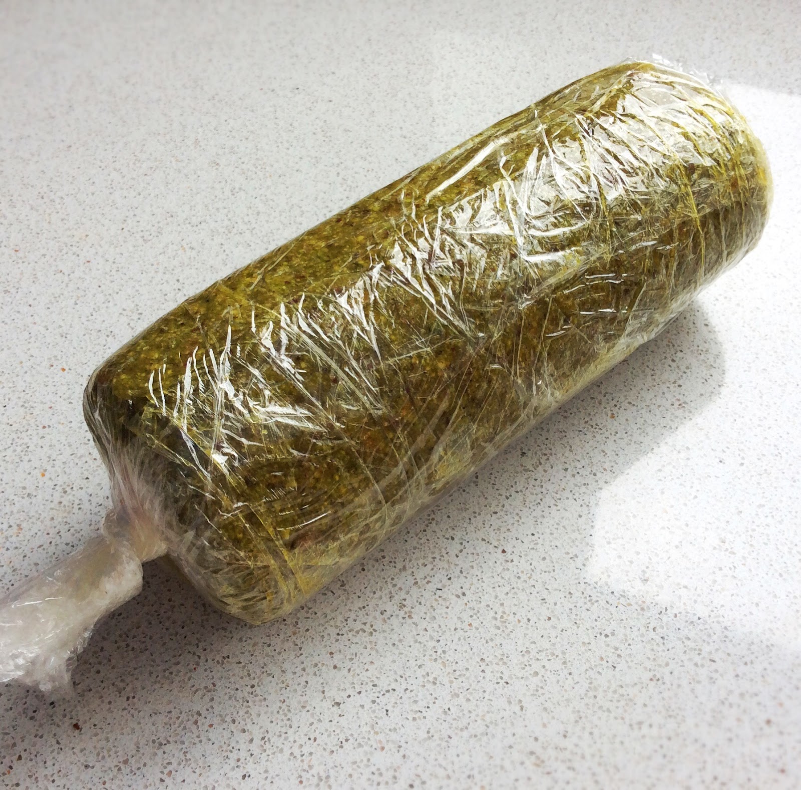 8. Wrap the new double layered cylinder firmly in clingfilm and return to fridge to firm.