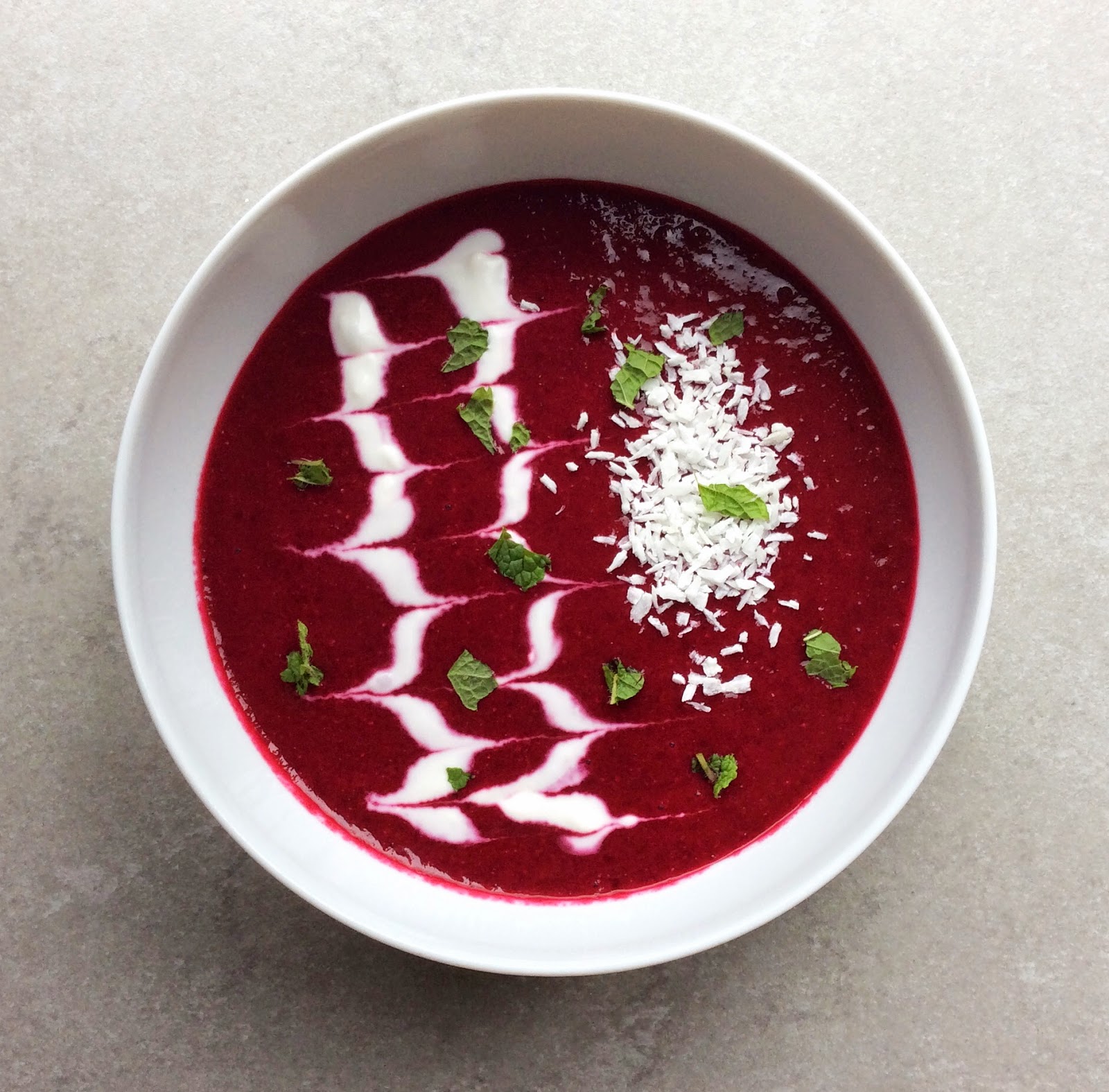 | Beetroot Cherry Acai Smoothie with coconut cream swirl |