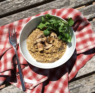 Like all traditional mushroom risotto recipes I have stuck to the use of rehydrating porcini mushrooms (don't forget to reserve the soaking liquid to use as stock!) to give depth of flavour, as well as fresh mushrooms to give a meatier bite to this vegan dish.